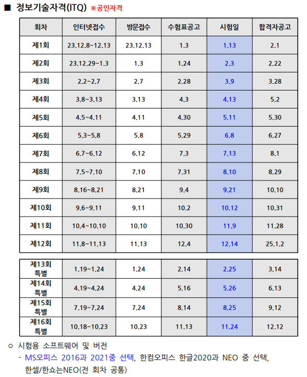 2024³â ITQ ÀÚ°ÝÁõ ½ÃÇèÀÏÁ¤